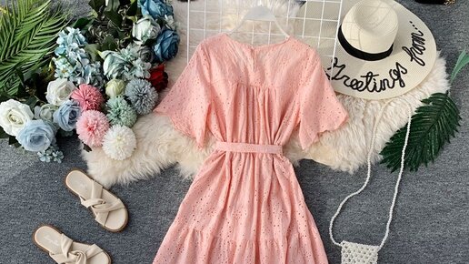 Женское платье с короткими рукавами, круглым вырезом и высокой талией, элегантное летнее платье в корейском стиле, g1672 с Алиэкспресс обзор