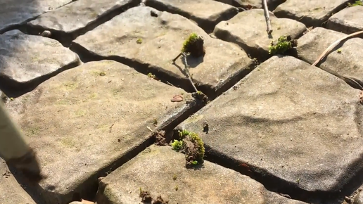 Садовая дорожка, чистим мох между плитками. Процесс крупным планом
