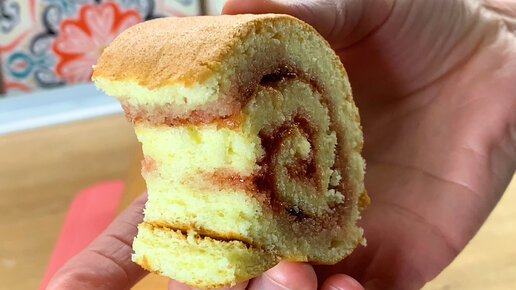 Бисквитный рулет с начинкой из варенья. Очень вкусный десерт