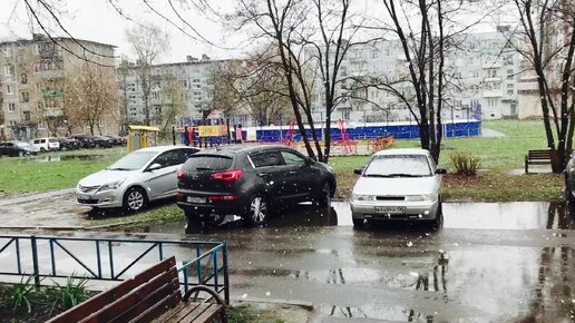 В Подмосковье цветы на газонах засыпало снегом в конце апреля