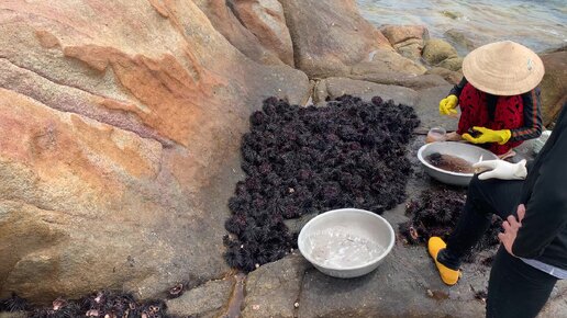 Вьетнамцы разделывают морских ежей на диком пляже! Показываю процесс и красивое море вокруг