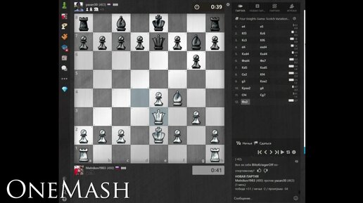 Игра в четыре коня: шотландский вариант, против противника из голландии, выстрел пулей 1+0