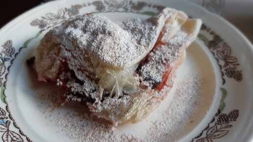 Пирожки с шоколадом и клубникой из слоеного бездрожжевого теста в микроволновке за 8 минут