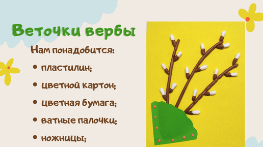 Сделали лёгкую поделку к Пасхе. Веточка вербы из пластилина и ватных палочек