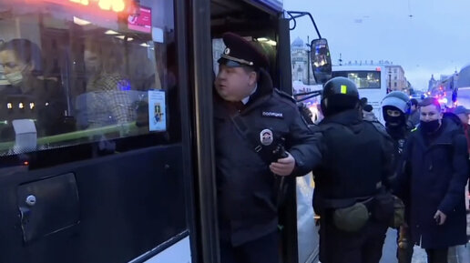 Подполковник торопится утрамбовать протестующих в автобусы Санкт-Петербурга