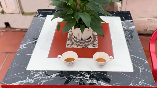 Кофейный столик из керамической плитки на бетонном основании