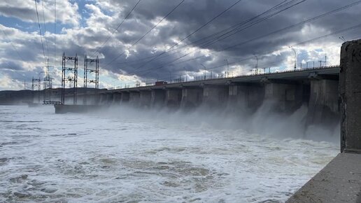 Спуск воды на Жигулевской ГЭС. Просмотр с закрытой территории