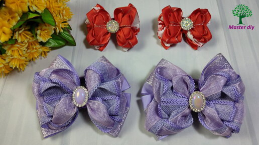 Бантики крученые из ленты 2.5см и 4см\Master diy МК канзаши