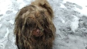 Маленький собачонок,уже не мог передвигаться из за панцира шерсти на его тельце...