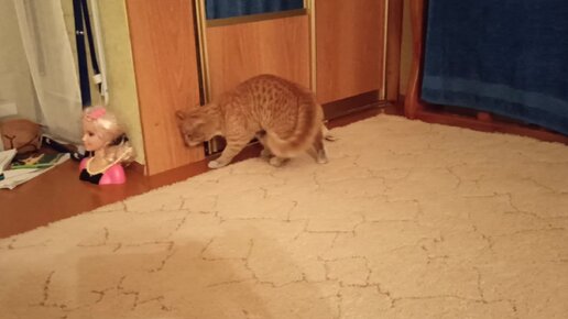 Кот играет в куклы