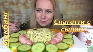 Мукбанг Спагетти с сыром и сосисками///Макароны с сосисками mukbang/ем и болтаю///