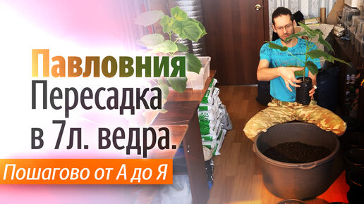 Пересадка Павловнии в 7 литровые ведра.