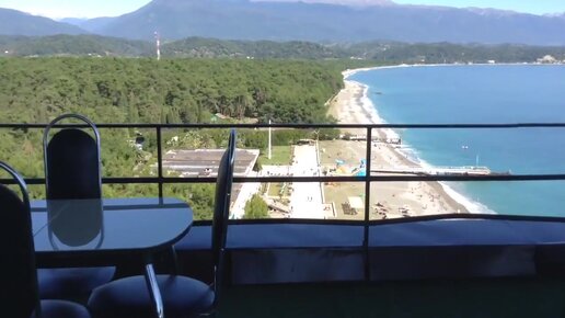 Красивый пляж в Пицунде, Абхазия. Шикарный вид из ресторана
