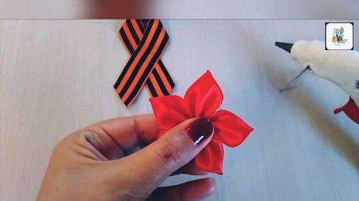 Брошь к 9 Мая. Георгиевская лента. Канзаши.