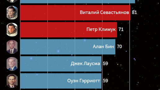 ТОП 15 Космонавтов/астронавтов по налету в космосе