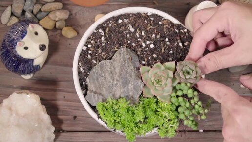 Композиция из суккулентов и цветного песка в горшке для дома🌵