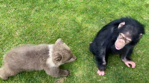 Трогательная дружба медвежонка и шимпанзе в турецком зоопарке