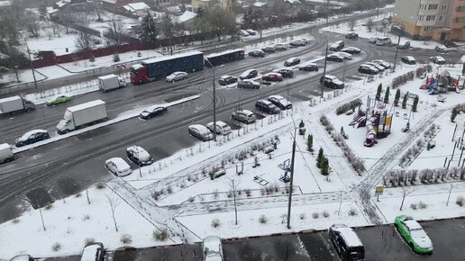 Апрельский снегопад/Подростки во дворе взломали дверь чужого автобуса и залезли на крышу
