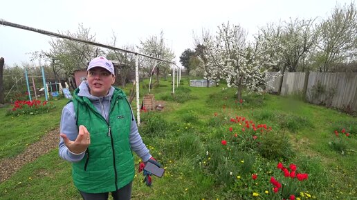 250 тюльпанов, 19 роз. Наш участок через 2 года.