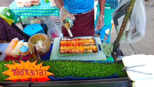 Как готовят Японские роллы на Тайском уличном рынке / Обзор уличной еды в Таиланде