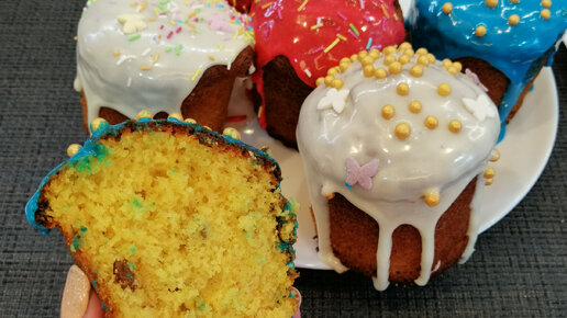 Творожные бездрожжевые куличи с глазурью из сгущёнки.