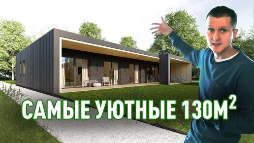 Обзор одноэтажного дома. Уникальный дизайн и панорамные окна в каждой комнате