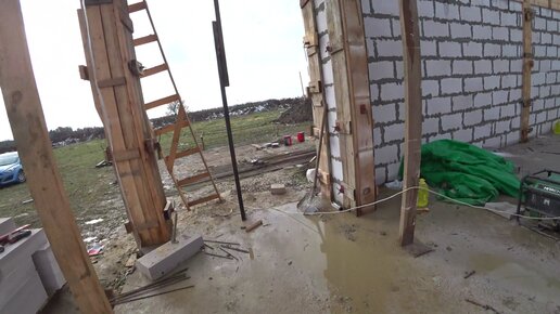 Делаем армопояс для дома из газобетона. Сделали септик, скважину и колодец для коммуникаций.