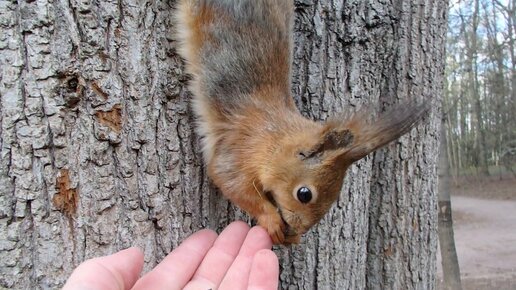 Кормлю белку семечками
