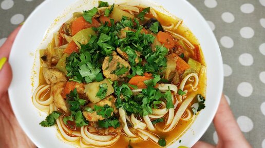 Показываю, как я просто готовлю "Лагман из свинины с лапшой"👍Пошаговый рецепт