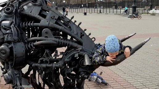Бык - скульптура, забава для детей или новая жизнь мусора?