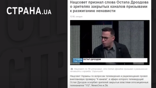 Разжигает ненависть. Нацсовет Украины по ТВ осудил оскорбления журналиста Дроздова в адрес зрителей закрытых каналов