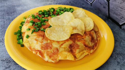 Если у Вас впереди активный день, то этот завтрак для Вас. Омлет с картофельными чипсами.