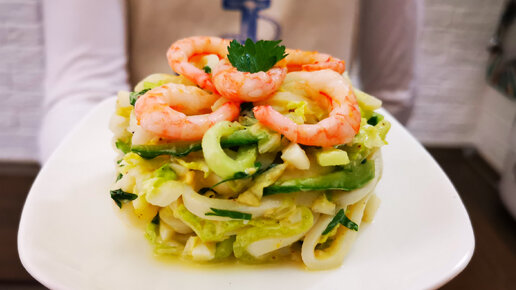 Салат "Морской Каприз" с кальмаром и пекинской капустой , делюсь вкусным рецептом