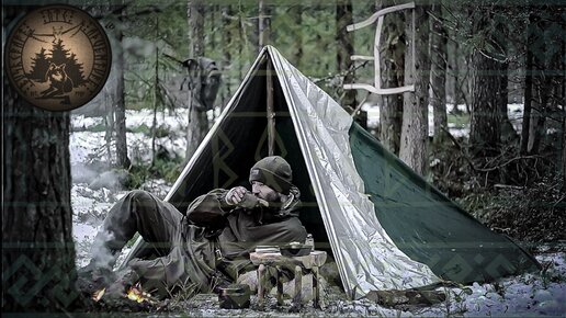 ОДИНОЧНЫЙ БУШКРАФТ ПОХОД - ПАЛАТКА ИЗ ТЕНТА - КАК СДЕЛАТЬ СТОЛИК В ЛЕСУ