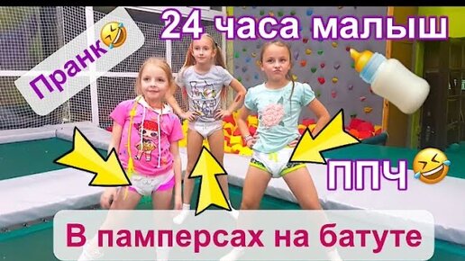 24 часа как малыш. В памперсах на батуте. Ляля челлендж ППЧ.