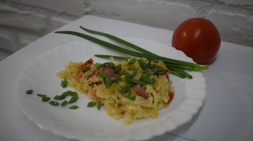 Капустная запеканка с сосиской. Все смешать и в духовку