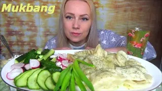 Мукбанг вареники с картошкой///овощи//mukbang вареники/ем и болтаю///