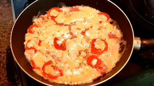 Идея на завтрак из яиц, грибов, помидор и сыра