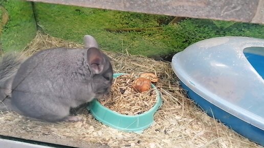 Посетили зоомагазин и увидели милую шиншиллу, которая трапезничала