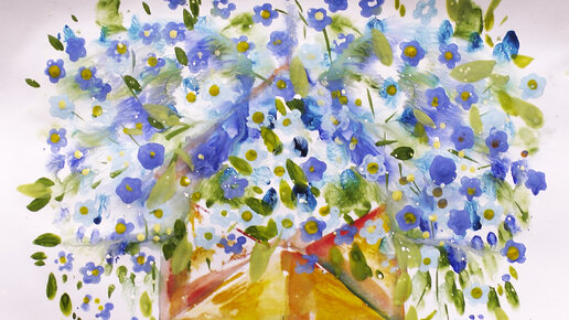 Рисуем незабудки в конверте. Монотипия с дорисовкой. Гуашь.