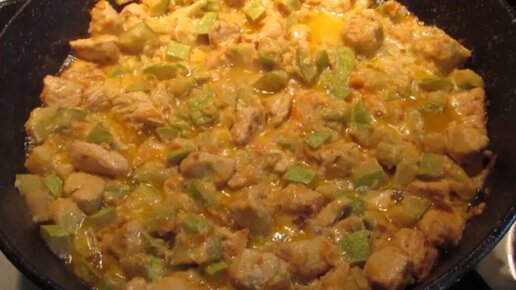 Мясо с кабачками в сметанном соусе на сковороде