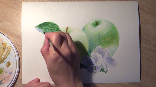 Как нарисовать реалистичное яблоко акварелью. Демонстрация процесса рисования зеленого яблока