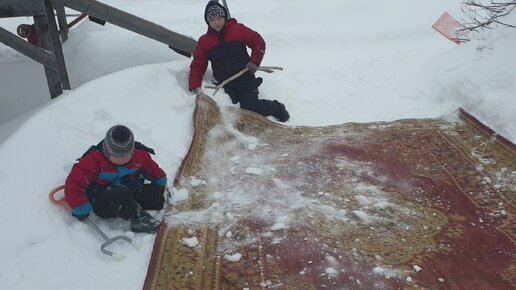 Дети избивают ковер/Веселые выходные/Чистим участок от снега