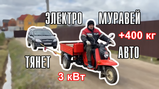 Электрический Муравей тянет автомобиль. Испытания по нагрузкой 400 кг и авто