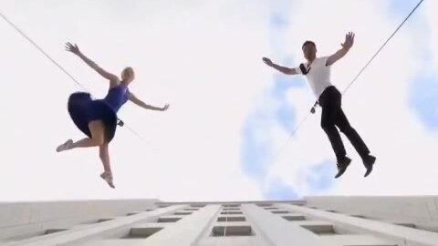 Вертикальный танец на здании.