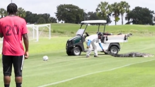 Аллигатор пришел на футбольное поле на тренировку, но его прогнали
