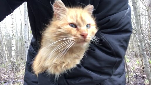Кот Рыжка у меня на коленях птиц в лесу слушает