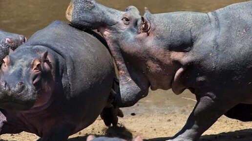Бегемот в деле - Против Носорога и Крокодила! Бегемот "спасает" животных и дружит с человеком...