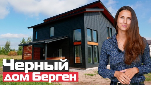 Черный двухэтажный дом Берген с террасой по скандинавской каркасной технологии/Балтийский Зодчий