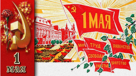 Старые открытки СССР с 1 Мая: 50-60 годы прошлого века